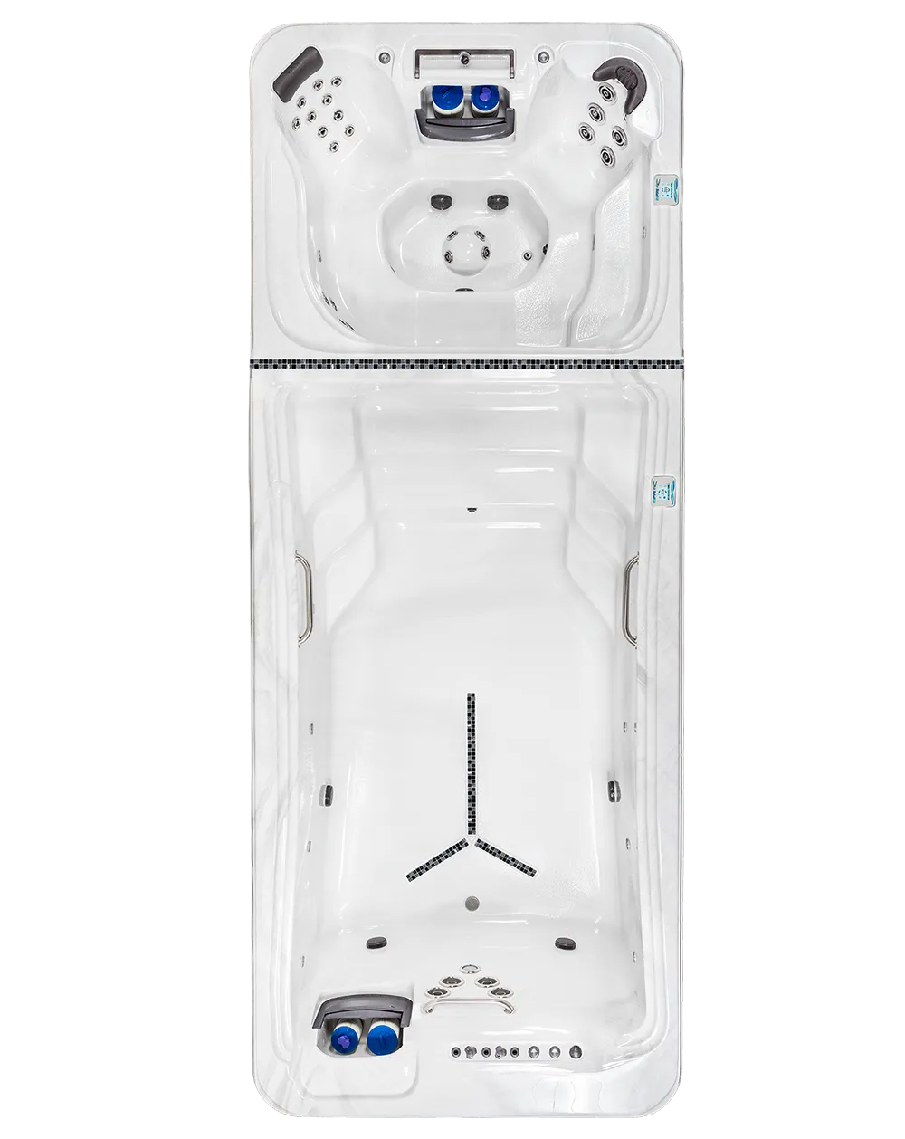The patented DT-19 TidalFit seamlessly integrates a 13ft exercise pool with our compact 6ft hydrotherapy spa so you can combine what you love about a swimming pool and a hot tub without having to pick. Each side offers separate temperature, jet and lighting controls and offers all the premium quality features found in our other TidalFit Pools and Artesian Hydrotherapy Spas.